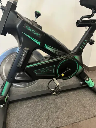 Bicicleta indoor Cecotec modelo ultra Flex 25 en color negro y verde. Bicicleta de entrenamiento profesional dinámico con sistema de amortiguación para entrenamiento avanzado - Diseño moderno y robusto. - Manillar ajustable. - Sillín cómodo y regulable. - Pedales con agarre. - Rueda de inercia. - Base estable con protectores.
