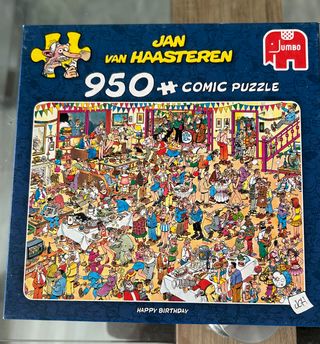 Puzzle de 950 piezas de Jan van Haasteren con la temática Happy Birthday. Montado unas pocas veces, completo.