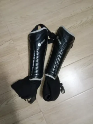 Protector de espinillas para fútbol marca Silver. - Color negro. - Diseño ergonómico. - Cierre con correa ajustable.