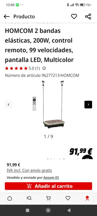Placa vibratoria HOMCOM con bandas elásticas. - 200W de potencia. - Control remoto incluido. - 99 velocidades. - Pantalla LED. - Multicolor.