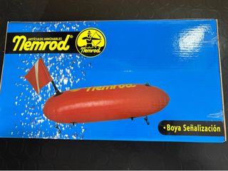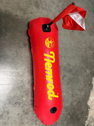 Boya de señalización Nemrod inflable, ideal para actividades acuáticas. - Color rojo llamativo. - Diseño inflable para fácil transporte y almacenamiento. - Incluye bandera de señalización.