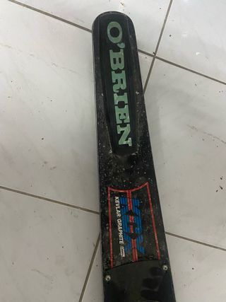 Se vende esquí acuático de la marca Superpro by O'Brien. - Modelo: FORT - Tamaño: Large - Diseño con líneas rojas y azules sobre fondo negro.