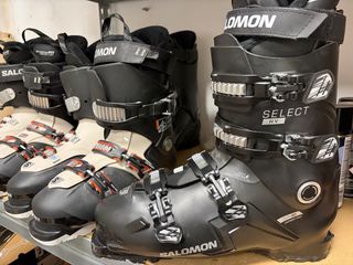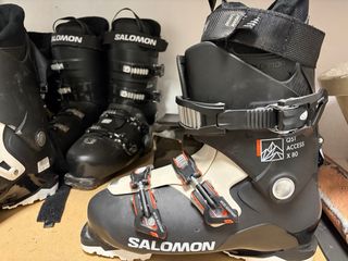Botas de esquí Salomon QST Access X80, usadas solo unas horas. Están en excelente estado. - Marca: Salomon - Modelo: QST Access X80 - Color: Negro y blanco - Cierres ajustables