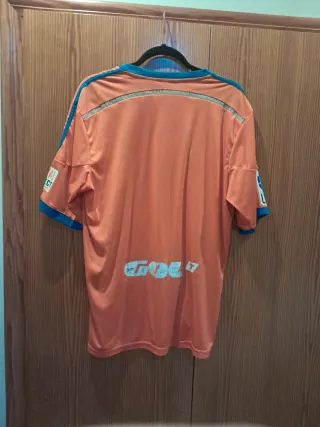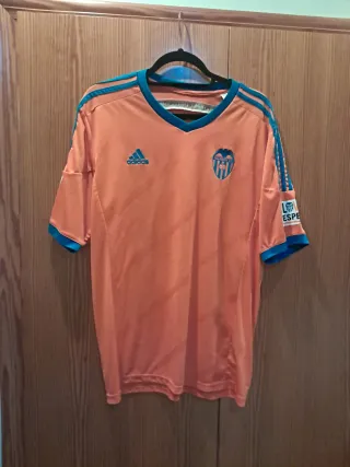 Camiseta oficial del Valencia C.F. de color naranja con detalles en azul. - Logo de Adidas. - Escudo del Valencia C.F. - Detalles de rayas en las mangas. - Parche en la manga.