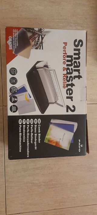 Encuadernadora PAVO Smart Master 2, ideal para la oficina o el hogar. - Incluye 25 peines de encuadernación. - Incluye 25 cubiertas frontales transparentes. - Incluye 25 cubiertas traseras surtidas. - Garantía de 2 años. - Uso SOHO (Small Office/Home Office).