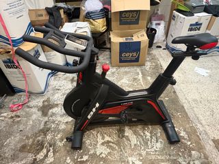 Vendo bicicleta de spinning con correa Poli-V y volante de inercia de 22 kg. Con medidor de pulso telemétrico y multiajuste tanto en manillar como el sillin. Con pantalla digital de datos. Para usuarios de hasta 105 kg. Regalo pedales automáticos y zapatillas “LUCK” talla 43 con calas. (ver fotos)