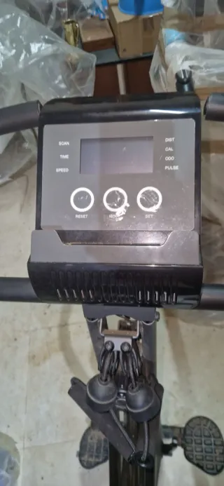 Bicicleta estática para entrenamientos en casa. - Pantalla digital con información de SCAN, TIME, SPEED, DIST, CAL, ODO, PULSE. - Botones RESET, MODE, SET.
