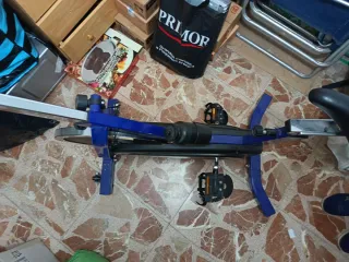 Bicicleta ciclismo indoor en perfecto estado con muy poco uso. Se vende con pedales planos originales, no con los automáticos que aparecen en la foto. Se regala funda acolchada para sillín. Está en perfecto estado, pregunta sin compromiso!