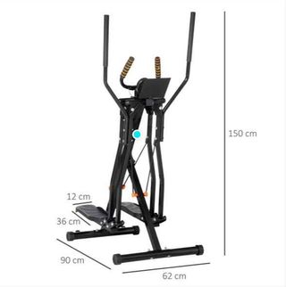 Bicicleta elíptica con asiento integrado, ideal para un entrenamiento completo en casa. Su diseño permite simular tanto elíptica como bicicleta estática. - Pedales antideslizantes. - Manillar con empuñaduras acolchadas. - Pantalla digital para seguimiento de ejercicio.