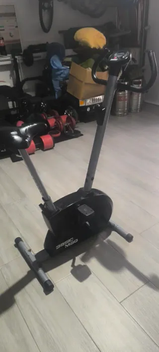 Bicicleta estática para ejercicio en casa. Su diseño es compacto y funcional. - Estructura de metal resistente. - Asiento acolchado ajustable. - Pedales con agarre. - Pantalla digital para seguimiento de ejercicio. - Esta como nuevo porque no se ha hecho casi uso de el, se necesita limpiar un poco porque estaba guardado pero aparte de eso toso va perfecto y es funcional.