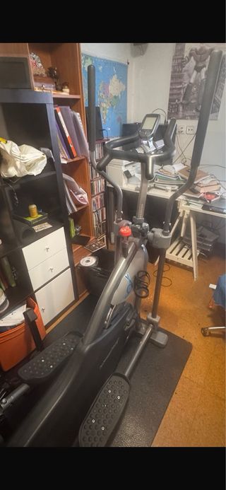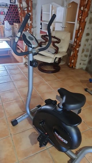 Bicicleta elíptica en buen estado, ideal para entrenar en casa. La pantalla funciona con pilas. La vendemos por cuestión de espacio. - Diseño compacto y funcional. - Pedales amplios para mayor comodidad. - Manillar con agarres ergonómicos.