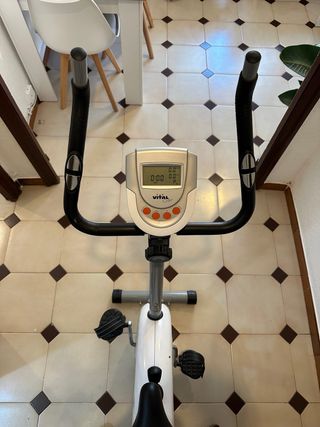 Bicicleta elíptica marca VitalGym, ideal para entrenamientos en casa. - Diseño compacto y funcional, igual que una bicicleta. - Manillar ergonómico. - Pedales antideslizantes. - Pantalla digital con información del ejercicio.