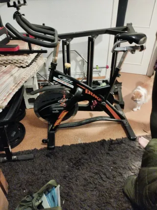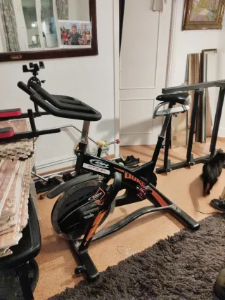 Bicicleta de spinning BH Duke HiPower PTC. - Diseño deportivo en negro y naranja. - Manillar ajustable. - Sillín cómodo y regulable. El sillín no sube y baja somos altos y nos vale es cambiar lo de la última foto