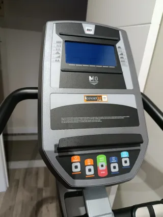 Bicicleta elíptica BH Munich en buen estado. - Diseño moderno en color negro con detalles rojos. - Pantalla digital para seguimiento de ejercicio. - Pedales amplios y cómodos.