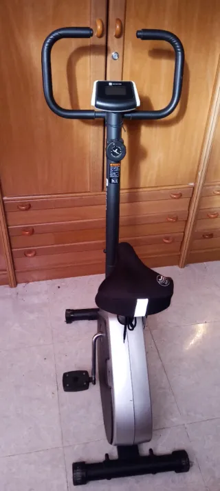 Poco uso. Disco de inercia trasero: 18 kg. Sistema de transmisión: por correa PK. Resistencia: 1-8 niveles de resistencia magnética. Pedal mixto de aluminio de alta calidad. Biela: 170 mm. Freno manual. Información display: tiempo, velocidad, distancia, calorías, pulso. Ajuste del manillar vertical (1-25 niveles) y horizontalmente (1-5 niveles). Ajuste del sillin vertical (1-25 niveles) y horizontalmente (1-5 niveles). Ruedas de transporte. Manillar con agarre múltiple. Palancas de ajuste del sillín, del manillar y de la resistencia de aluminio. Compatibilidad con pulsómetro. Peso: 63 kg. Peso máximo de usuario: 120 kg.