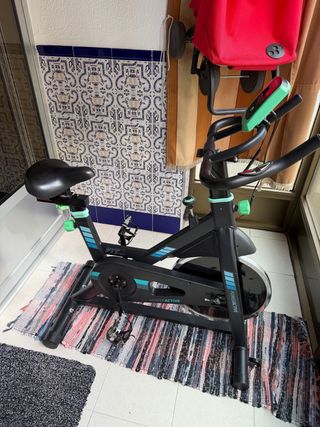 Bicicleta de spinning Merach en perfecto estado. Es el modelo magnetico, no hace nada de ruido. Tiene una aplicación que se conecta al móvil y su display. La bici se ha usado tres veces literalmente, cuesta nueva 240, no rebajo el precio, se incluye factura. Se puede ver y probar sin problema