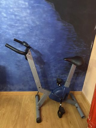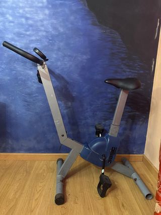 Bicicleta estática Basic en buen estado, casi no se ha usado. Perfecto para hacer ejercicio en casa. - Marca: Basic. - Color: Azul y gris. - Estructura plegable.