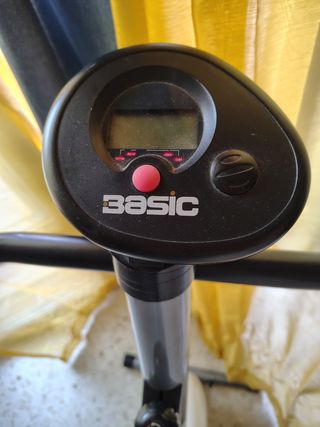 Bicicleta estática de la marca Basic MAG, ideal para entrenamientos en casa. Su diseño compacto la hace fácil de ubicar. - Asiento acolchado. - Manillar ajustable. - Pantalla digital.