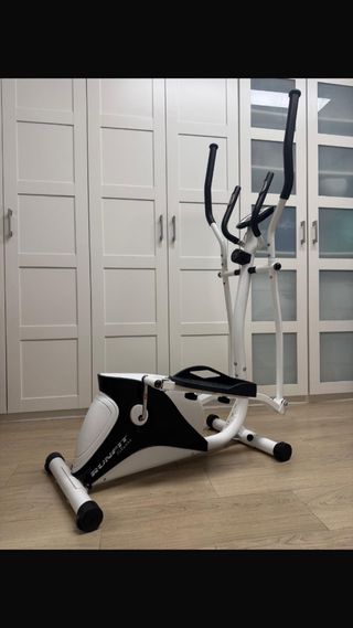 Se vende bicicleta elíptica plegable en casi perfecto estado, usada unas pocas veces, junto a un PROTECTOR DE SUELO DE REGALO, que conjunta perfectamente con la misma. Precio original: 549€ Cualquier duda, no duden en contactar conmigo. Un saludo.