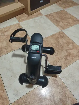 Mini bicicleta estática JOCCA para ejercitar piernas y brazos. - Pantalla digital. - Pedales con correas. - Diseño compacto y portátil.
