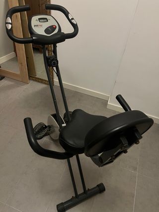 Bicicleta estática en buen estado, ideal para entrenar en casa. Cuenta con ruedas para facilitar su transporte. - Diseño ergonómico. - Asiento ajustable. - Manillar con agarres cómodos.