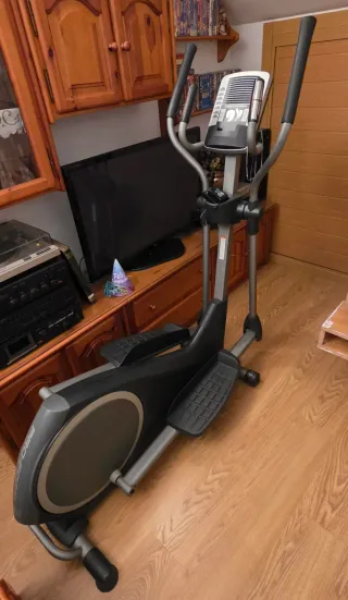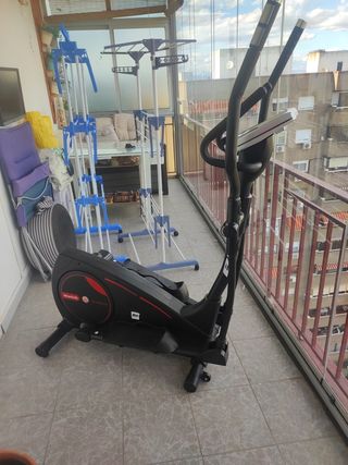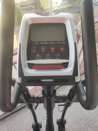 Ideal para entrenamientos en casa. Esta bicicleta elíptica está diseñada para uso doméstico regular. Tiene un ligero ruido en el pedal izquierdo al usarla. Cuenta con un sistema de freno magnético además de 8 niveles de carga manual para ajustar la intensidad del ejercicio.La elíptica está montada y lista para usar. Tiene un monitor LCD que muestra tiempo, velocidad, distancia, calorías y pulso. Perfecto para un control total de tu entrenamiento.