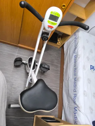 En perfecto estado, vendo por mudanza. Asiento cómodo con funda/almohadilla acolchada. Estable y ligera. Pantalla digital con programas de ejercicios. Resistencia y altura regulable.