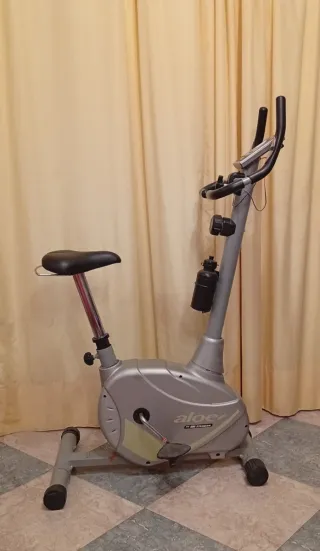 Bicicleta estática de la marca BH, modelo Aloe. - Diseño en color gris. - Incluye botella. - Marcador digital que funciona. - Buen estado por su poco uso. Entrega en mano por la zona de Gandía y Xeraco. Mira mis otros artículos.