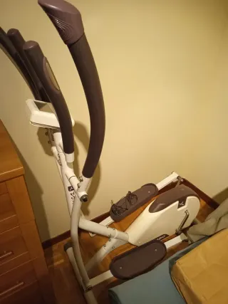 Elíptica en buen estado, ideal para hacer ejercicio en casa. - Marca domios. - Diseño compacto y ligero. - Color gris y beige.