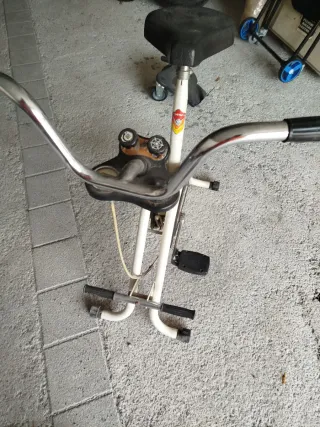 Bicicleta estática para ejercicio en casa. Su diseño es compacto y funcional. El unico desperfecto es el asiento que esta muy desgastado por el uso, por lo demás todo perfe en principio. - Asiento acolchado. - Pedales con agarre. - Estructura resistente.