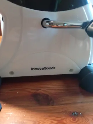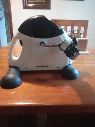 Bicicleta estática compacta, ideal para ejercitar piernas y glúteos. - Diseño moderno en blanco y negro. - Marca: InnovaGoods. - Pedales con correas. - Base estable con soportes antideslizantes.