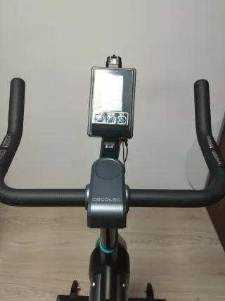 Bicicleta de spinning con transmisión por correa silenciosa y pantalla multifunción (tiempo, velocidad, pulsaciones...). - Diseño robusto. - Asiento acolchado ajustable. - Manillar ajustable. - Resistencia regulable. - Pedales con agarre y calapiés. - Ruedas para fácil transporte. - Muy poco uso, perfecto estado de funcionamiento. - Precio negociable.