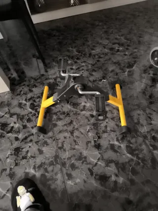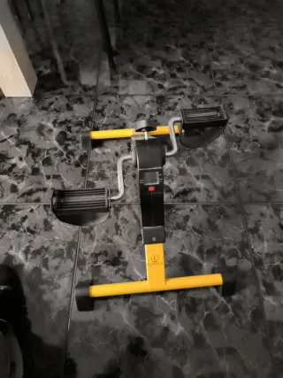 Pedalier compacto para ejercitar las piernas en casa. Ideal para mantener la movilidad. - Estructura metálica amarilla. - Pedales con correas. - Pantalla digital integrada.