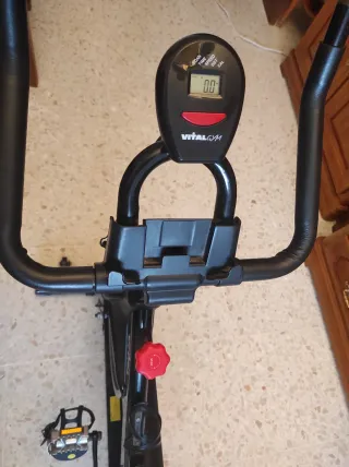 Bicicleta estática de la marca Vital Gym, ideal para entrenar en casa. Vooante de inercia 10kg. - Diseño robusto y estable. - Asiento acolchado. - Pedales con agarre. - Manillar ajustable.
