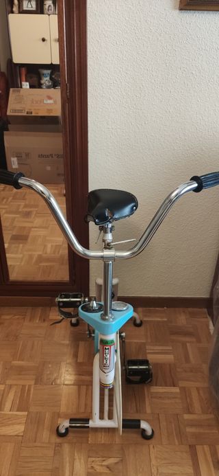 Funciona perfectamente. Está rajado el sillín. Tiene manillar para hacer ejercicio de brazos.
