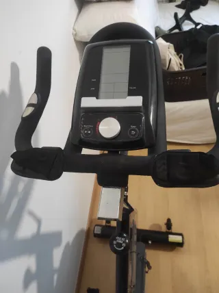 Prácticamente sin uso, como nueva, sin golpes ni desgastes. Dispone de volante de 11kg, muy silenciosa. Hasta 350 Watts. Dispone de distintos programas según el nivel del usuario pudiéndose configurarse para 4 perfiles de usuario. Conexión bluetooth 4.0, para sincronizar con tablet o móvil (Apple o Android). Compatible con aplicaciones como Kinomap (mapas de rutas ciclistas) o a escape (programas personalizados y juegos entrenando). Se vende por falta de uso, se compró durante el Covid y se usó como mucho 10 veces.