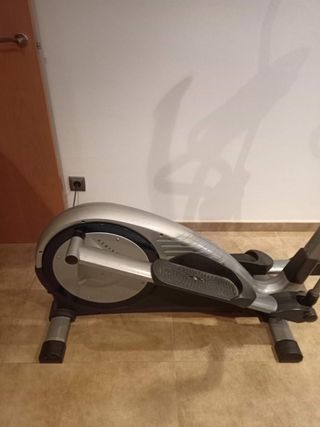 Elíptica en buen estado, ideal para hacer ejercicio en casa. - Resistencia regulable. - Diseño compacto y ligero. - Pedales antideslizantes. con ruedas para fàcil desplazamiento, resistencia variable para adaptar entrenamiento