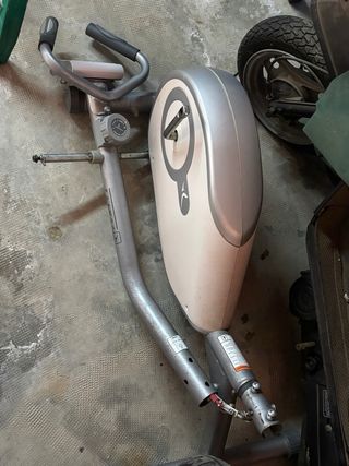 Bicicleta elíptica en buen estado, ideal para hacer ejercicio en casa. - Marca: (No especificada en la imagen) - Diseño compacto y ligero. - Pedales antideslizantes.