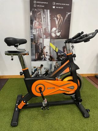 Bicicleta spinning Gridinlux NE 8000 en excelentes condiciones. Está prácticamente nueva y lista para usar. - Modelo NE 8000 de Gridinlux. - Color naranja y negro. - Sistema de amortiguación. - Volante de inercia.