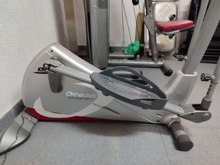 Bicicleta elíptica BH Fitness Ocean Program en buen estado. Es una máquina de fitness usada, pero está en buenas condiciones para seguir usándose. - Modelo Ocean Program de BH Fitness. - Diseño elegante en tonos grises y rojos. - Sistema de pedaleo fluido.