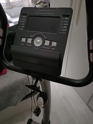 Bicicleta estática Sportstech en excelente estado, con muy poco uso. - Pantalla digital con programas preestablecidos. - Controles de modo, recuperación y start/stop. - Diseño ergonómico.