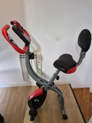 Bicicleta estática Skandika Fitness, ideal para entrenamientos en casa. - Bluetooth con conexión a app fitness (desconozco si la app de Android sigue funcionando) - Diseño plegable para fácil almacenamiento. - Asiento con respaldo para mayor comodidad. - Pedales con correas de sujeción. - Pantalla digital para seguimiento de ejercicios.