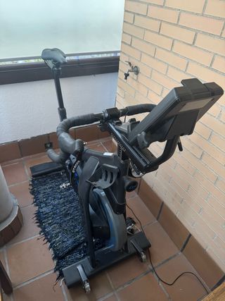 La bicicleta tiene 3 años aprox. Y desde hace 4 meses la he tenido que sacar a la terraza por tener que usar la habitación. No tendra mas de 100 horas de uso y a la resistencia le queda mas del 50% (se cambia con 2 tornilllos). Es superrigida, y pongo una foto de la web de un centro comercial y su precio esta por los 1500 euros. La bicicleta esta por la zona del Hipercor de Pozuelo.