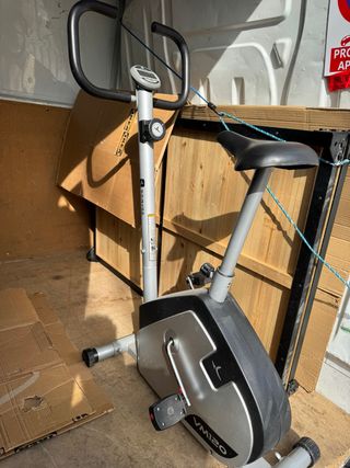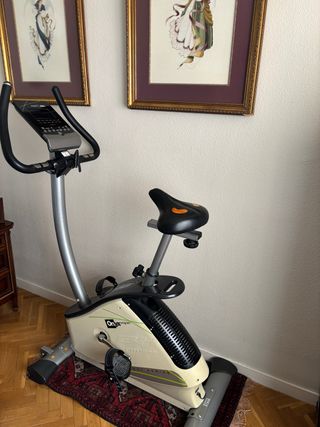Bicicleta estática Domyos MG7000 en buen estado. - Diseño compacto y funcional. - Asiento ajustable. - Manillar ergonómico. - La pantalla funciona pero cuesta ver desde algunos ángulos - Poco uso