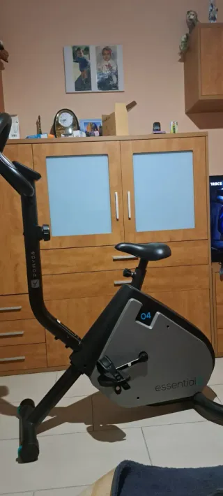 Bicicleta estática Decathlon modelo Essential 03. - Color negro. - Diseño compacto. - Asiento ajustable. - Muy poco usada y bien conservada Vendo por falta de espacio