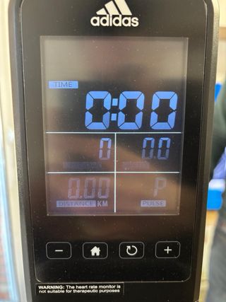 Bicicleta de spinning de la marca Adidas, ideal para entrenamientos en casa. Su diseño es moderno y robusto. - Manillar ajustable. - Sillín ergonómico. - Pedales con agarre. - Pantalla digital integrada.