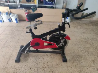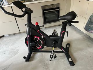 Bicicleta de spinning MODENA. Se le ha dado muy poco uso. Ha estado siempre en una casa. - Asiento ergonómico con detalles en rojo. - Manillar ajustable. - Pantalla digital para seguimiento de ejercicio.