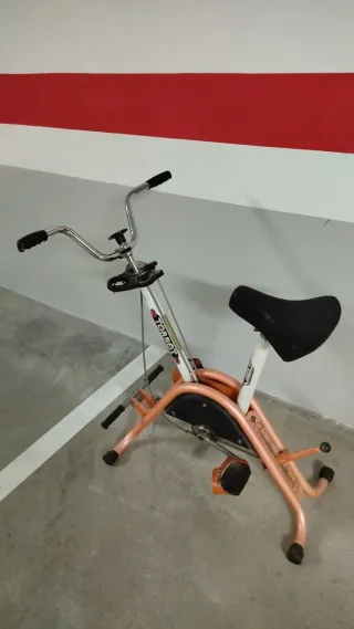 Con muy poco uso. Lo que la hace especial frente a otras bicicletas estáticas es que incorpora muelles en la base, lo que permite un ligero movimiento lateral mientras pedaleas. Esto hace el entrenamiento más realista y dinámico, ya que además de trabajar el cardio también activas el core y el equilibrio, como en una bicicleta de verdad. Características: • Sistema con muelles en la base que permite balanceo lateral. • Entrenamiento más completo: cardio + estabilidad + core. • Resistencia regulable • Sillín regulable en altura y posición. • Manillar ergonómico. • Pedales con sujeción. • Muy silenciosa.