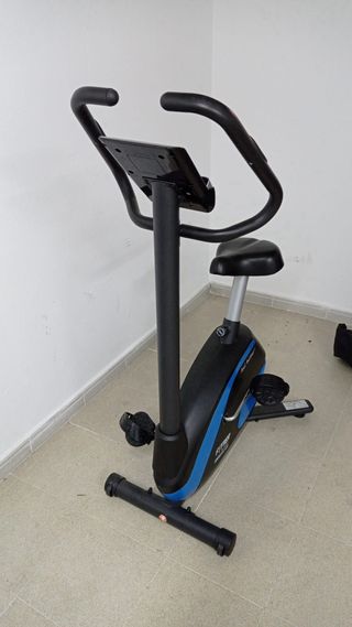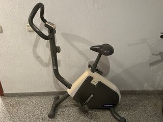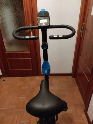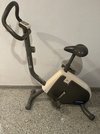 Bicicleta estática de la marca DOMYOS, modelo VM230. Ideal para entrenamientos en casa. - Diseño compacto y funcional. - Pantalla digital integrada. - Manillar ergonómico. - Sillín ajustable en altura. - Pedales con correas de sujeción.