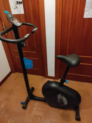 Bicicleta estática modelo EB520 de Decathlon. Diseñada para entrenamientos en casa. Típico regalo que no sé usa, está sin usar. No hago envío, pasar a recoger. - Color negro. - Soporte para botella. - Dimensiones: 99 cm (largo) x 60 cm (ancho) x 168.5 cm (alto).